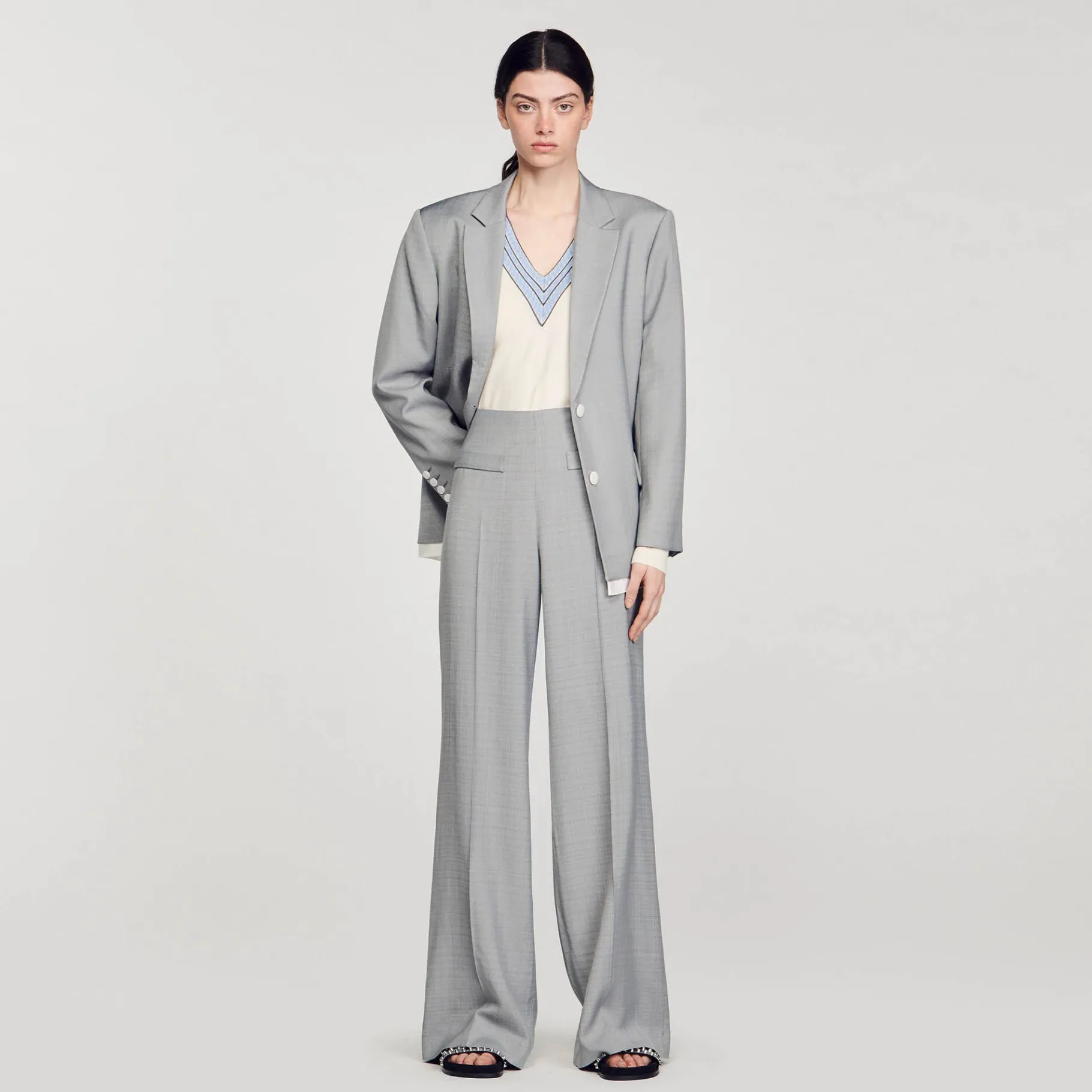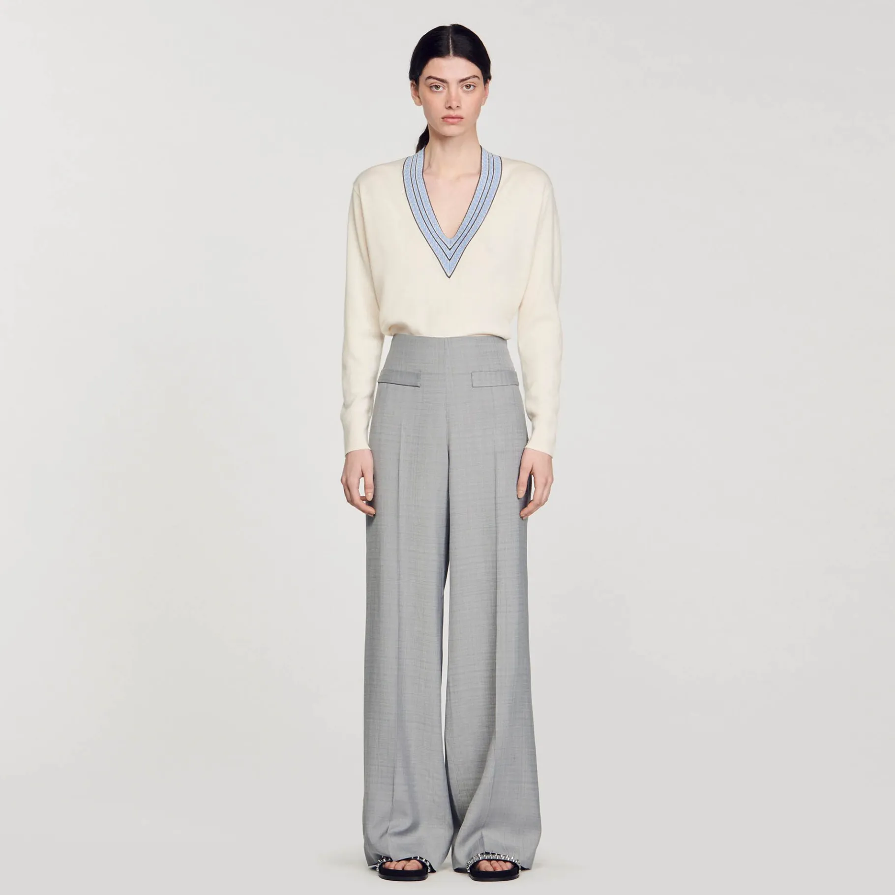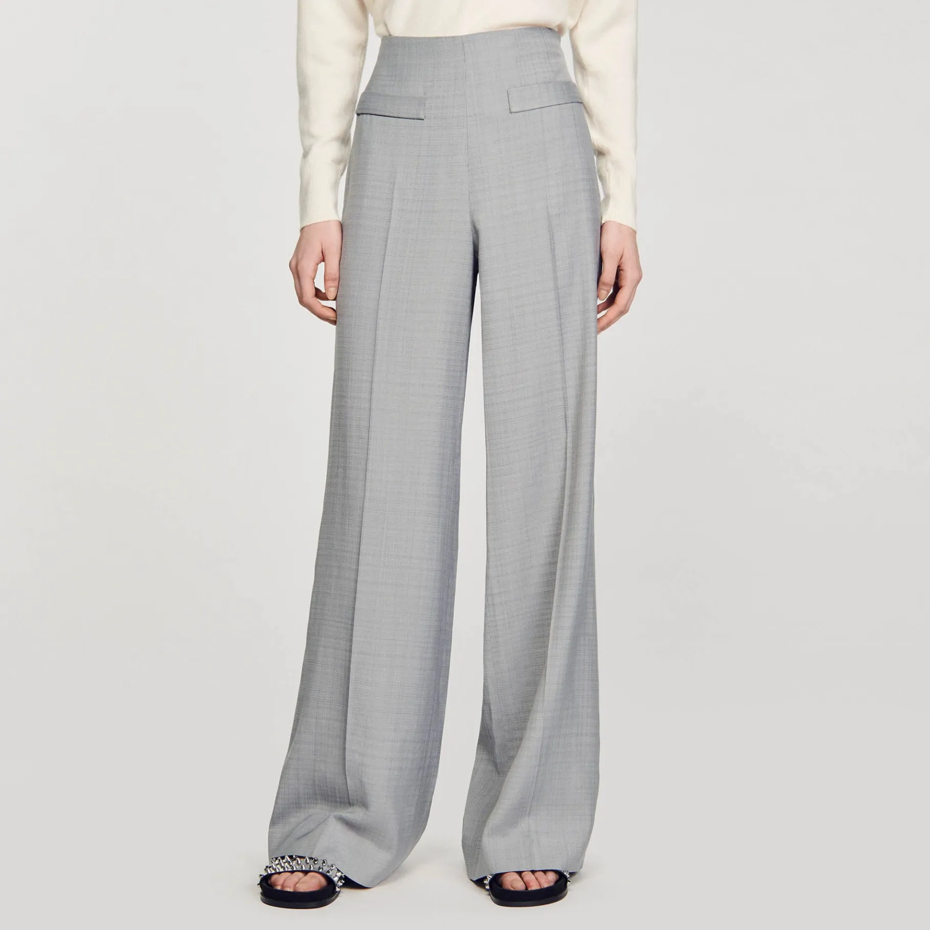 Calças De Cintura Alta Com Pernas Largas, Dardos Marcados E Grandes Bolsos De Debrum.