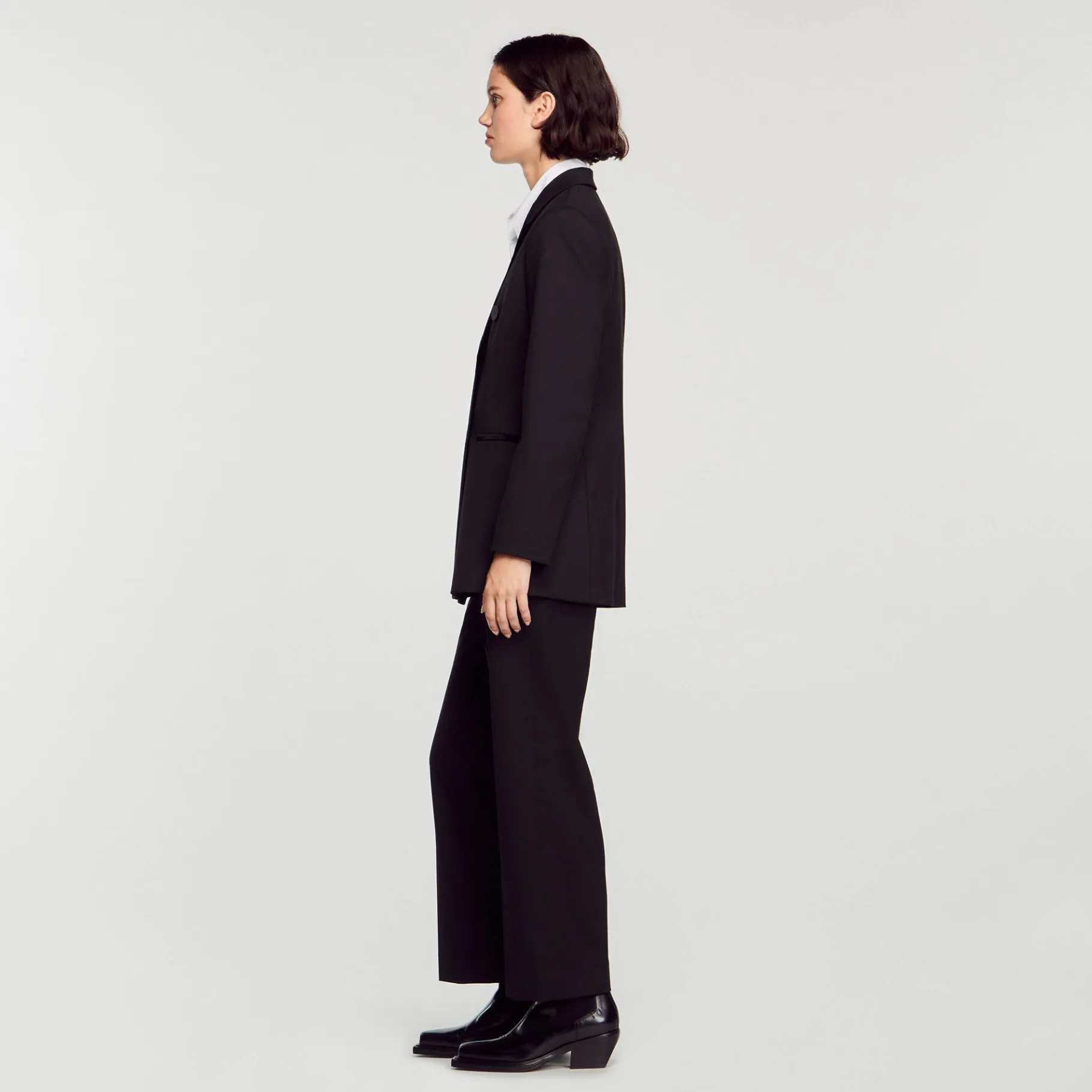 Jaqueta De Cauda Com Mangas Compridas E Gola Larga De Veludo, Com Botões Trespassados E Bolso De Casa De Botão.