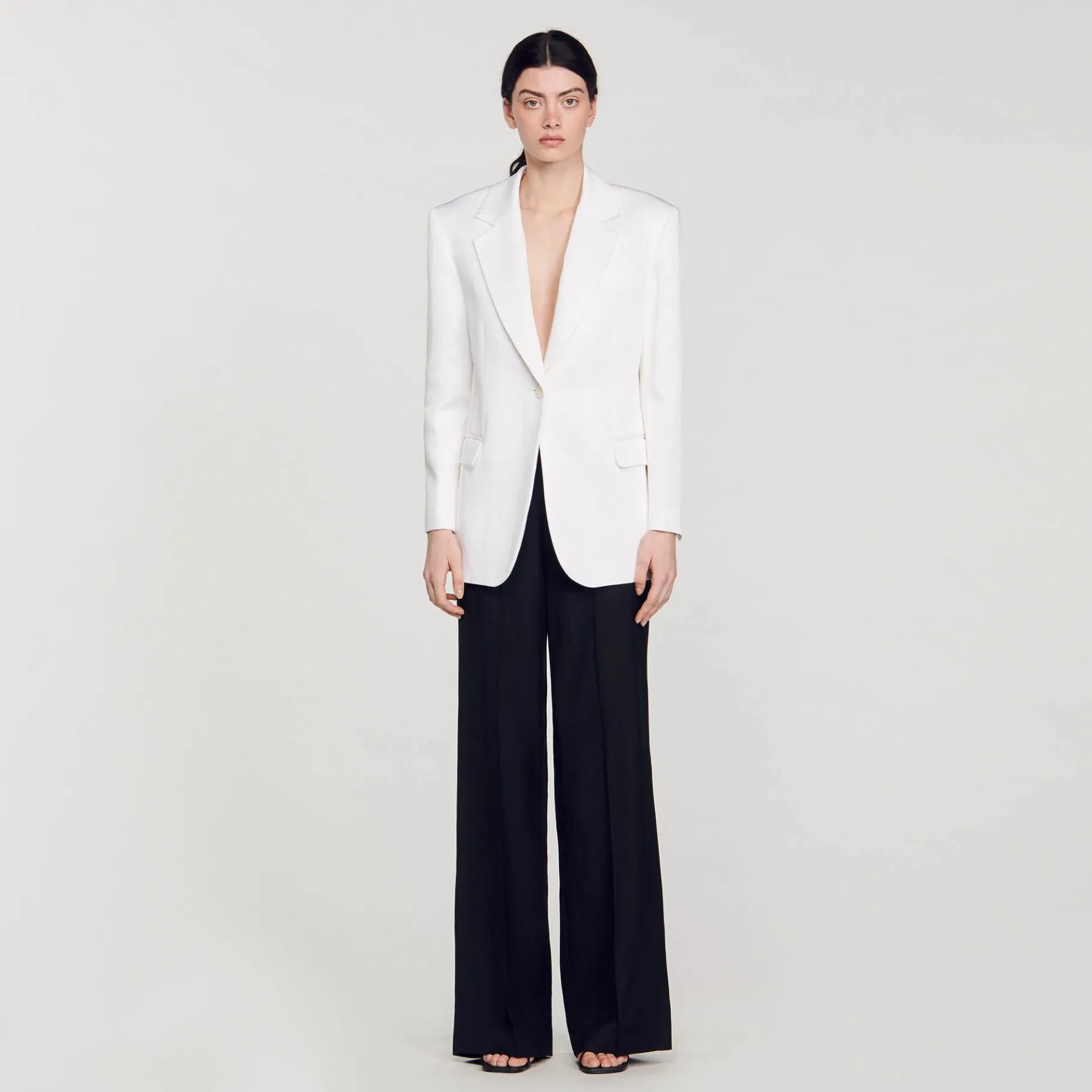Casaco De Alfaiataria Com Manga Comprida, Gola Clássica, Fecho De Botão, Bolsos De Pala E Bolso De Debrum No Peito.