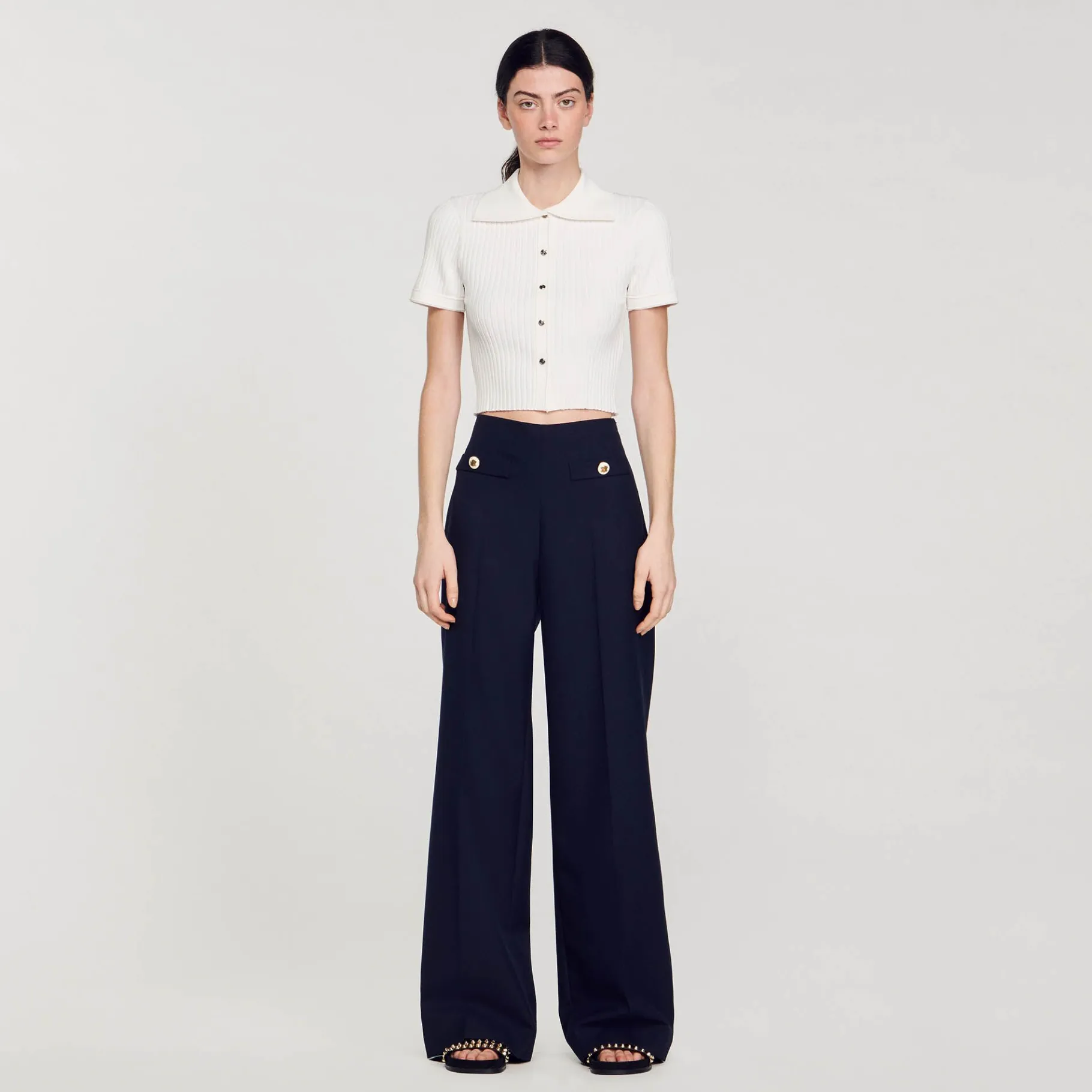 - Sandro Suéter Feminino De Malha Curta Com Nervuras