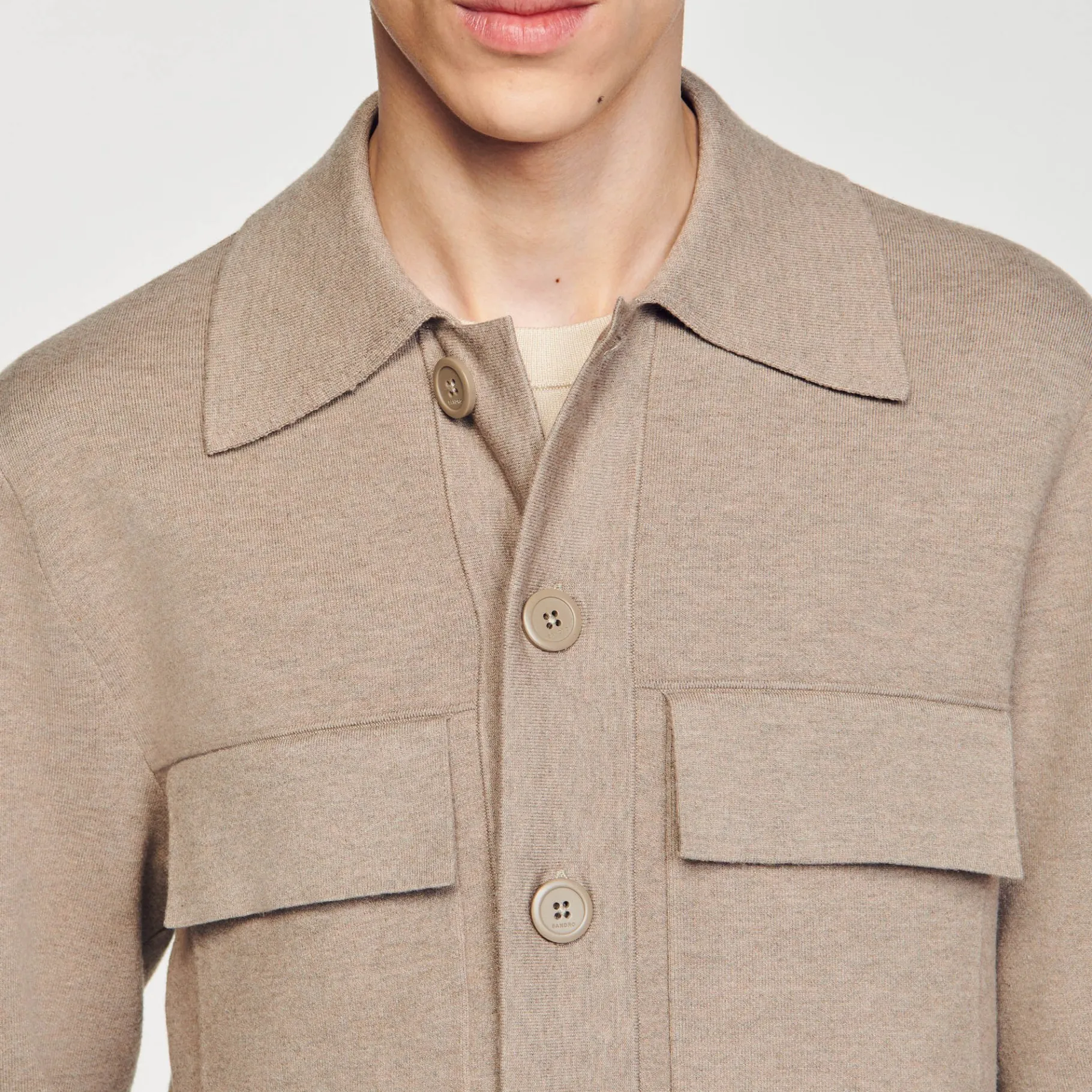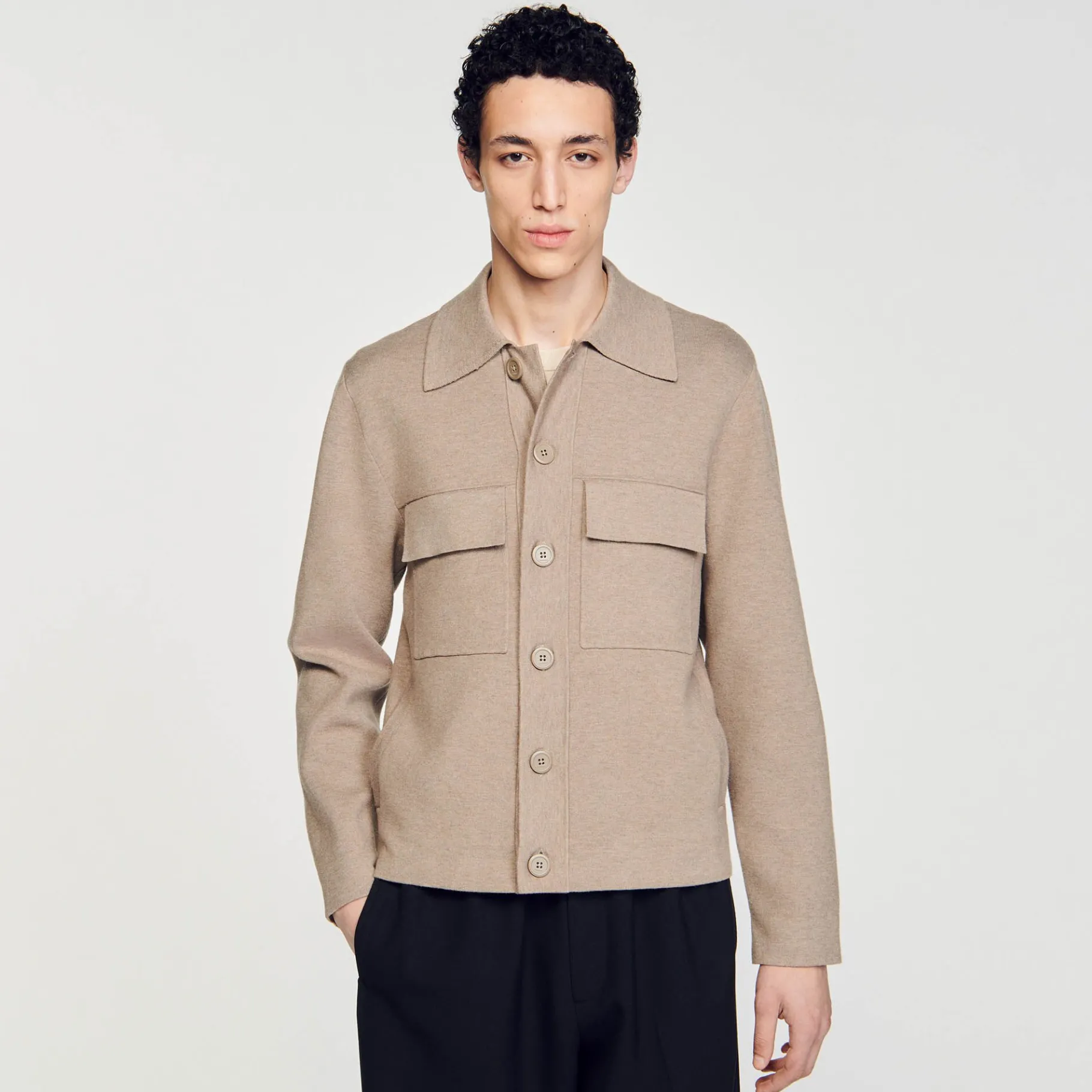 Jaqueta De Malha Milan Com Gola Clássica, Manga Comprida, Fecho De Botão E Bolsos De Aplicação No Peito E Dois Bolsos Laterais.