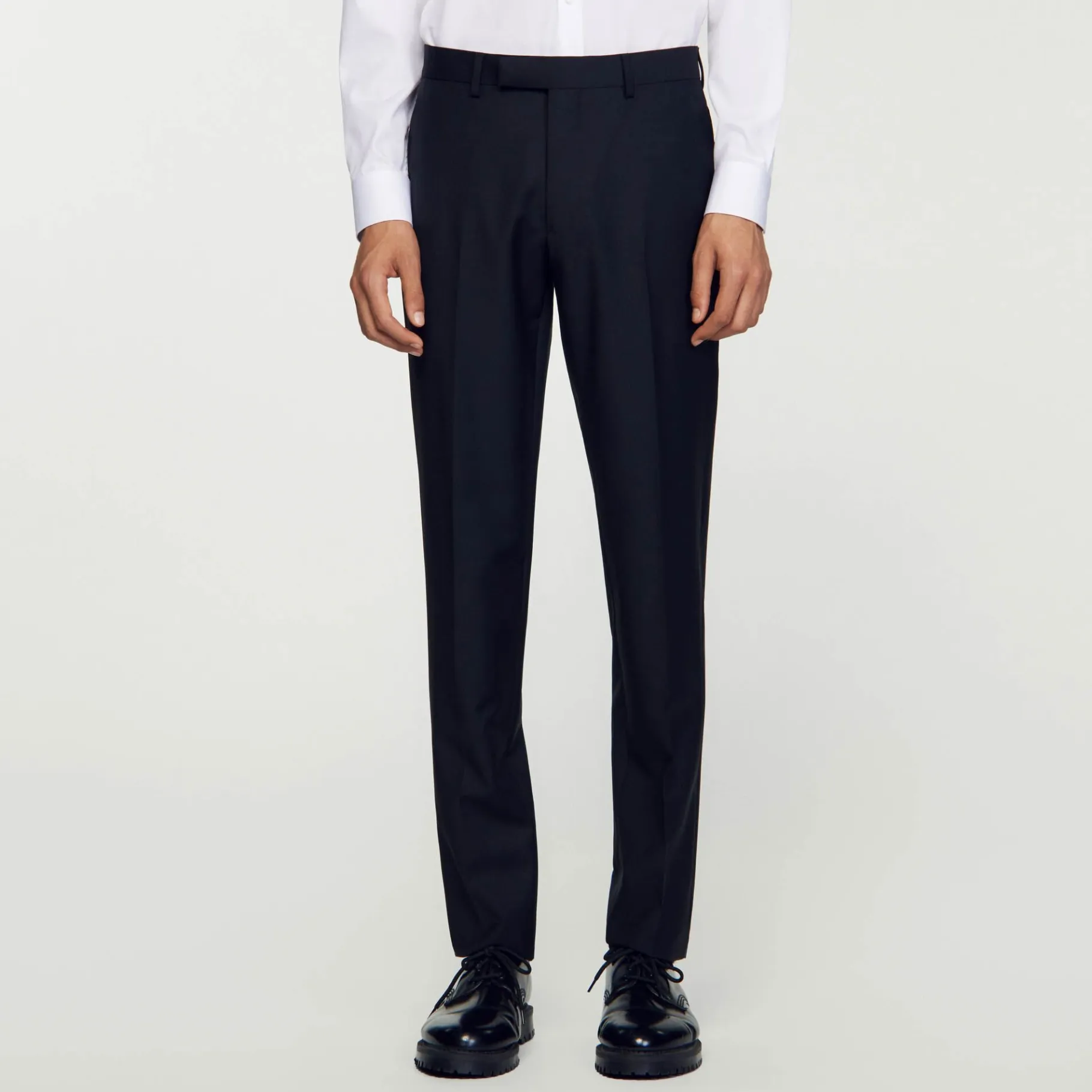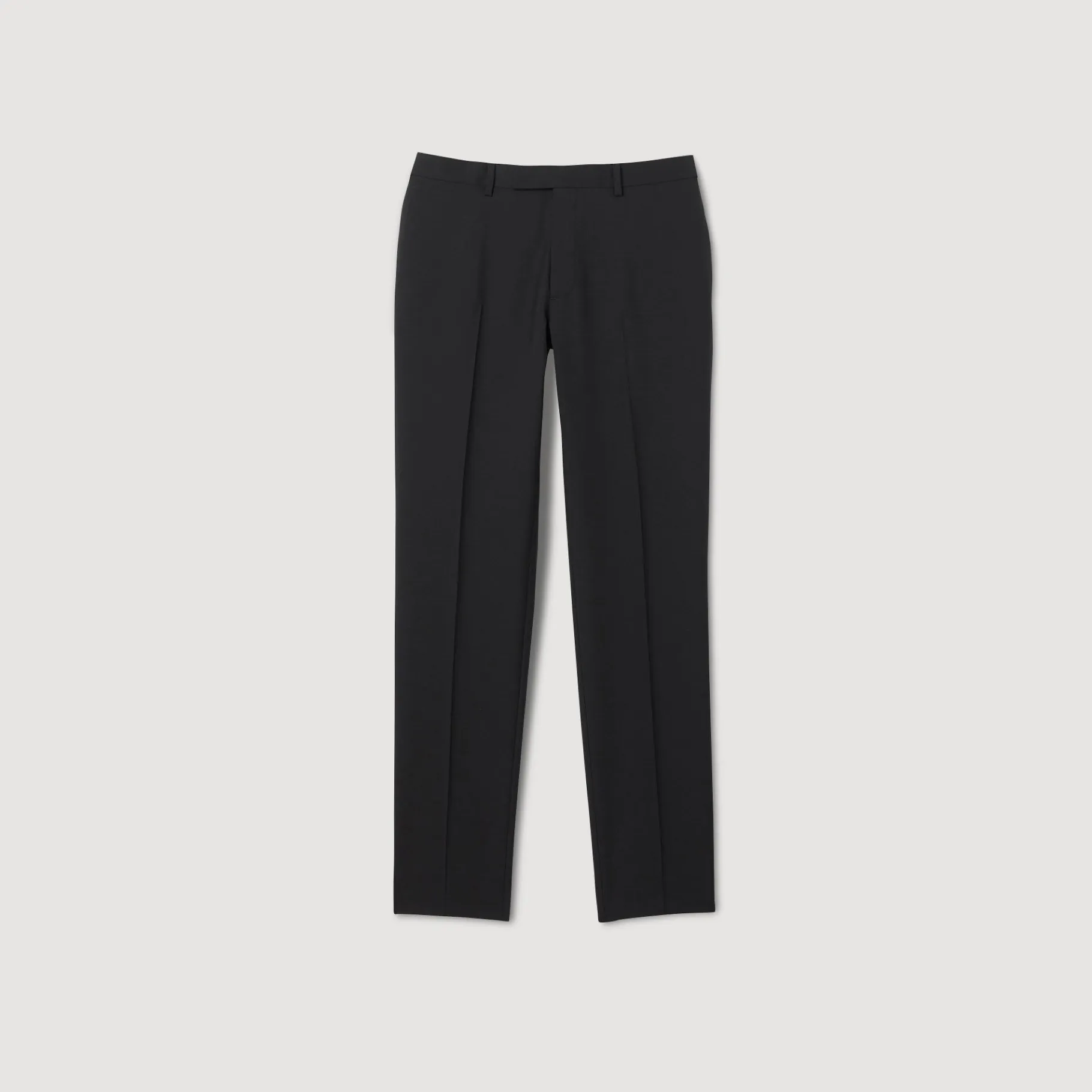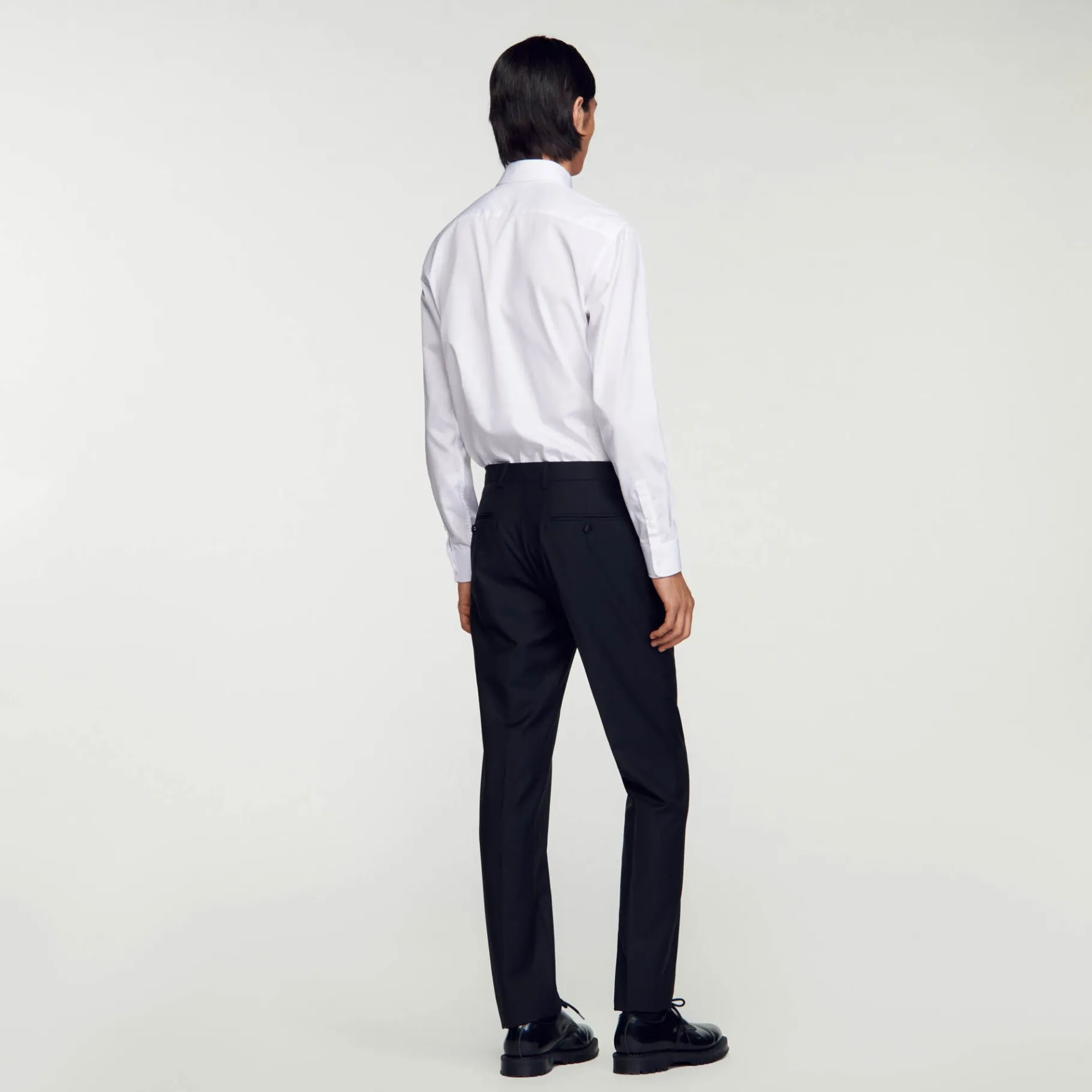 Calça Smoking Com Detalhes Em Cetim, Botões Forrados E Bolsos Laterais.