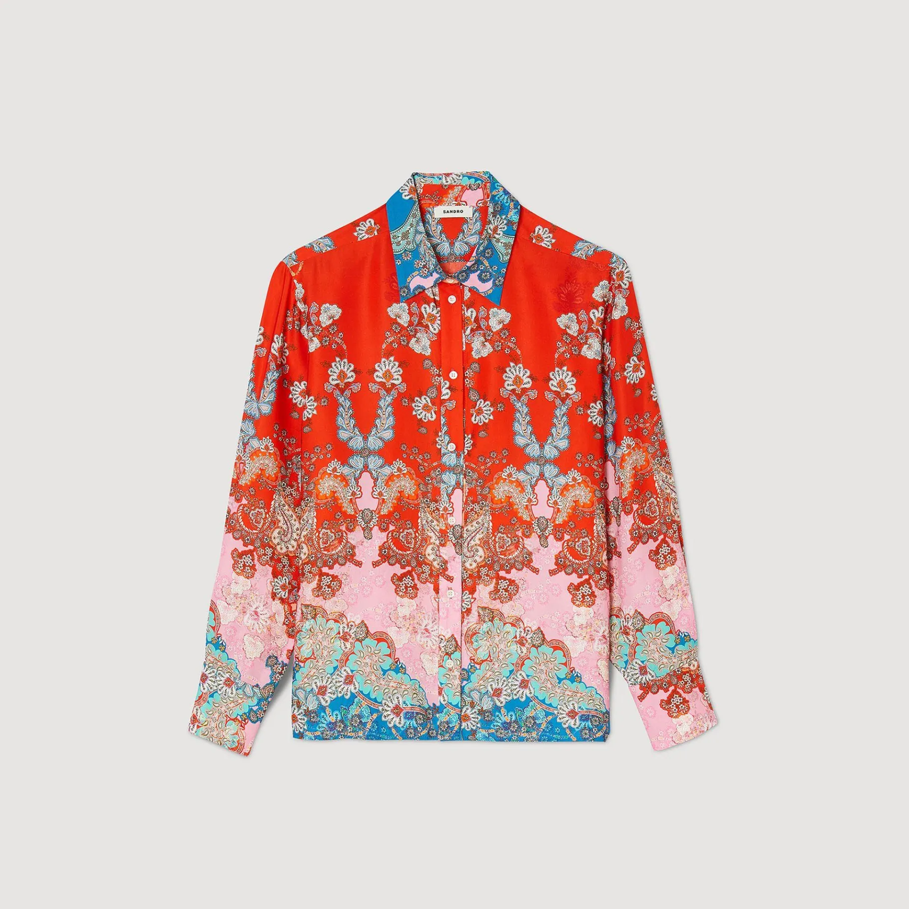 Camisa De Manga Comprida Com Gola Clássica, Fecho De Botão E Estampa Floral.