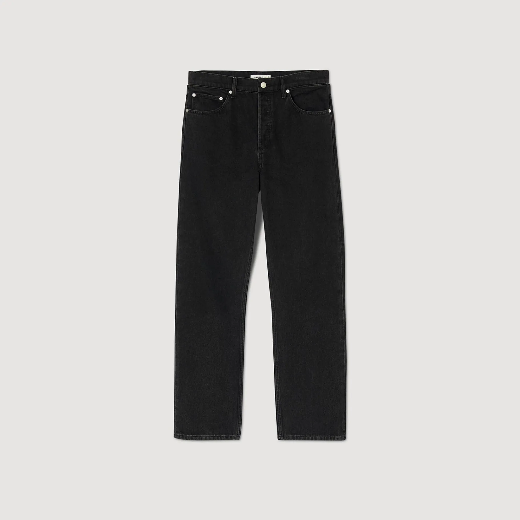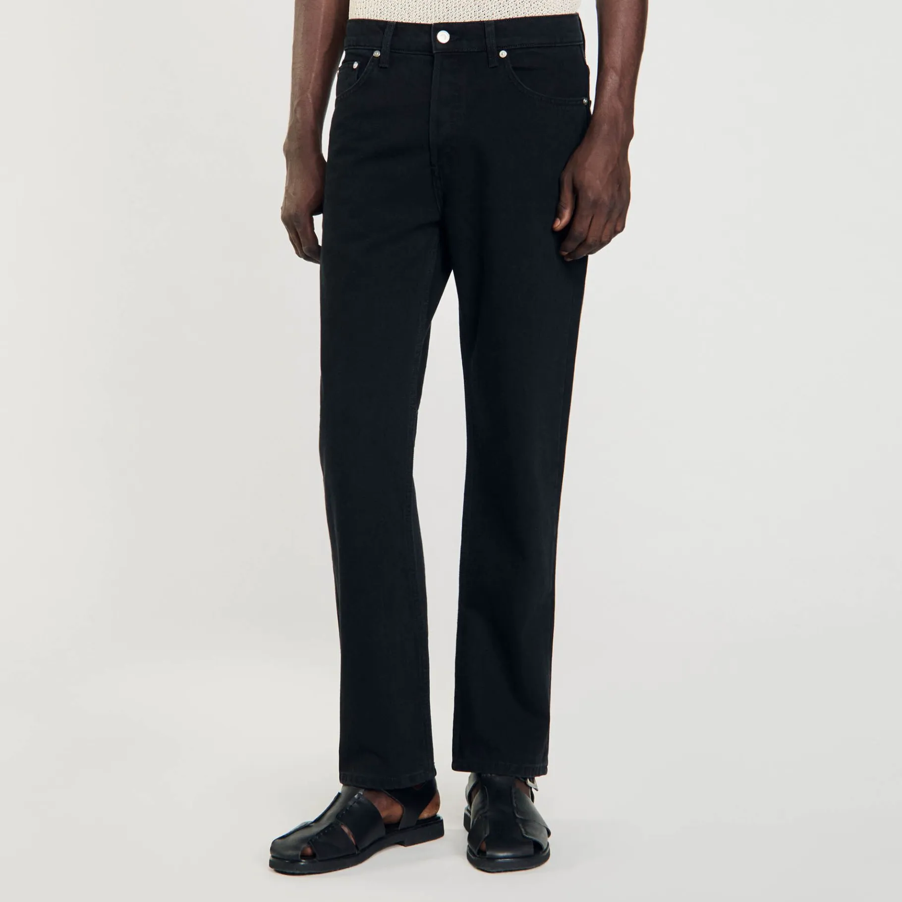 Jeans Retos Com Cinco Bolsos E Patch De Couro Nas Costas.