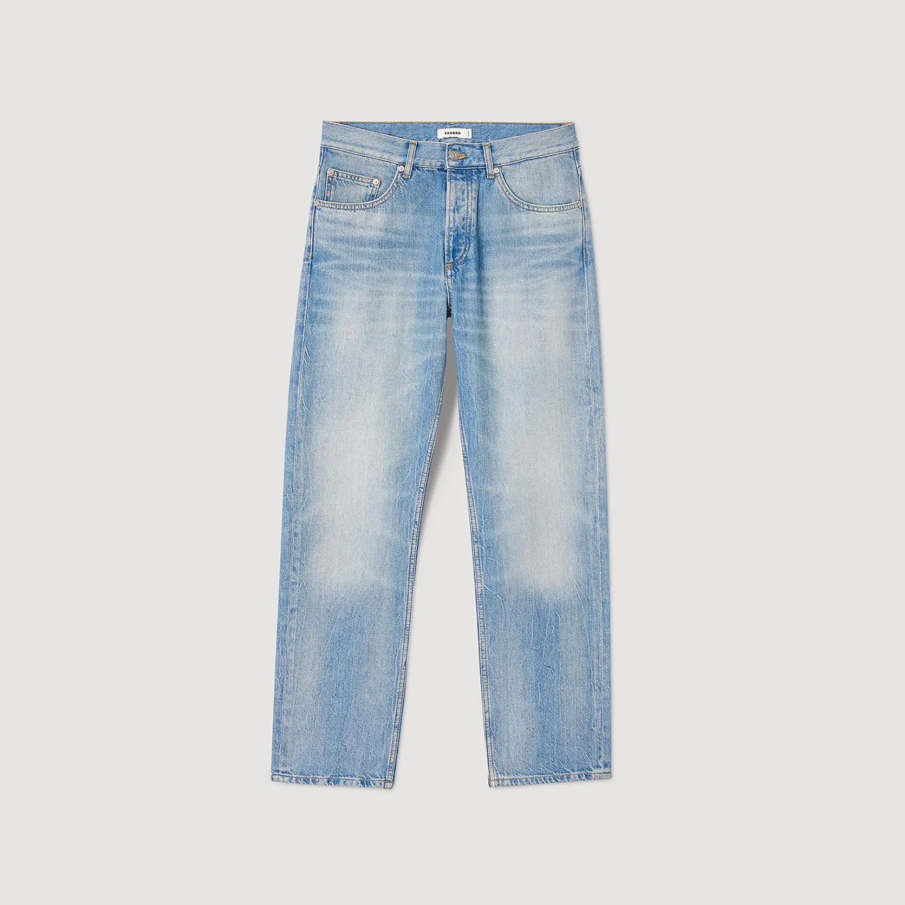 Jeans Jeans Desbotados Com Cinco Bolsos, Passantes Para Cinto E Patch Nas Costas.